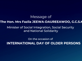 Oct 01, 2023 | Posted by mbc | 0 Message of The Hon. Mrs Fazila JEEWA-DAUREEAWOO, G.C.S.K, Minister of Social Integration, Social Security, and National Solidarity on the occasion of INTERNATIONAL DAY OF OLDER PERSONS View the discussion thread.