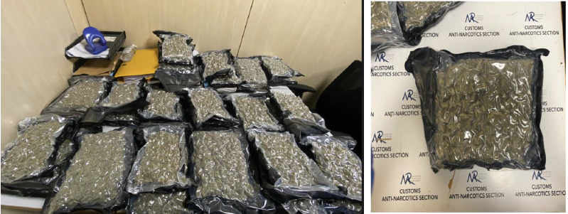 Les autorités mauriciennes ont intercepté, hier le vendredi 1er novembre 2024, un passager en provenance de Dubaï, transportant 19,69 kg de cannabis, d’une valeur estimée à Rs 24 millions, à l'aéroport international SSR. Ce passager, un ressortissant britannique âgé de 58 ans, a été arrêté par les agents de la Customs Anti-Narcotics Section (CANS) de la Mauritius Revenue Authority (MRA).
